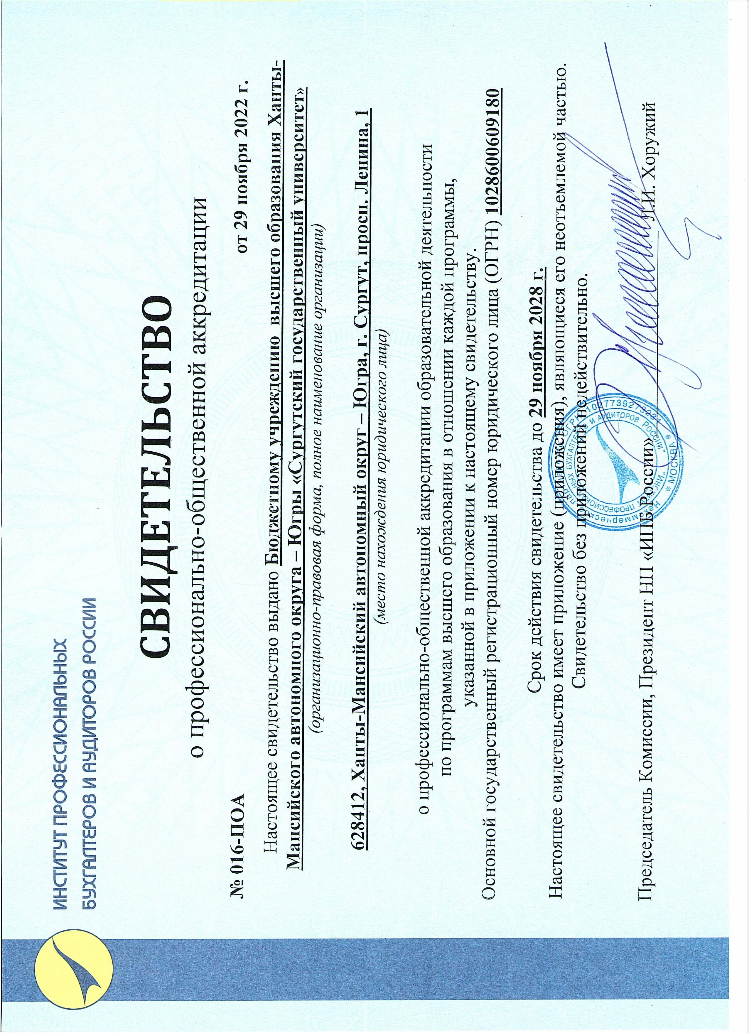 Профессионально-общественная аккредитация образовательных программ – это признание качества и уровня подготовки выпускников, освоивших образовательную программу. Сертификат подтверждает, образовательные программы СурГУ отвечают требованиям профессиональных стандартов и современного рынка труда к специалистам соответствующего профиля.