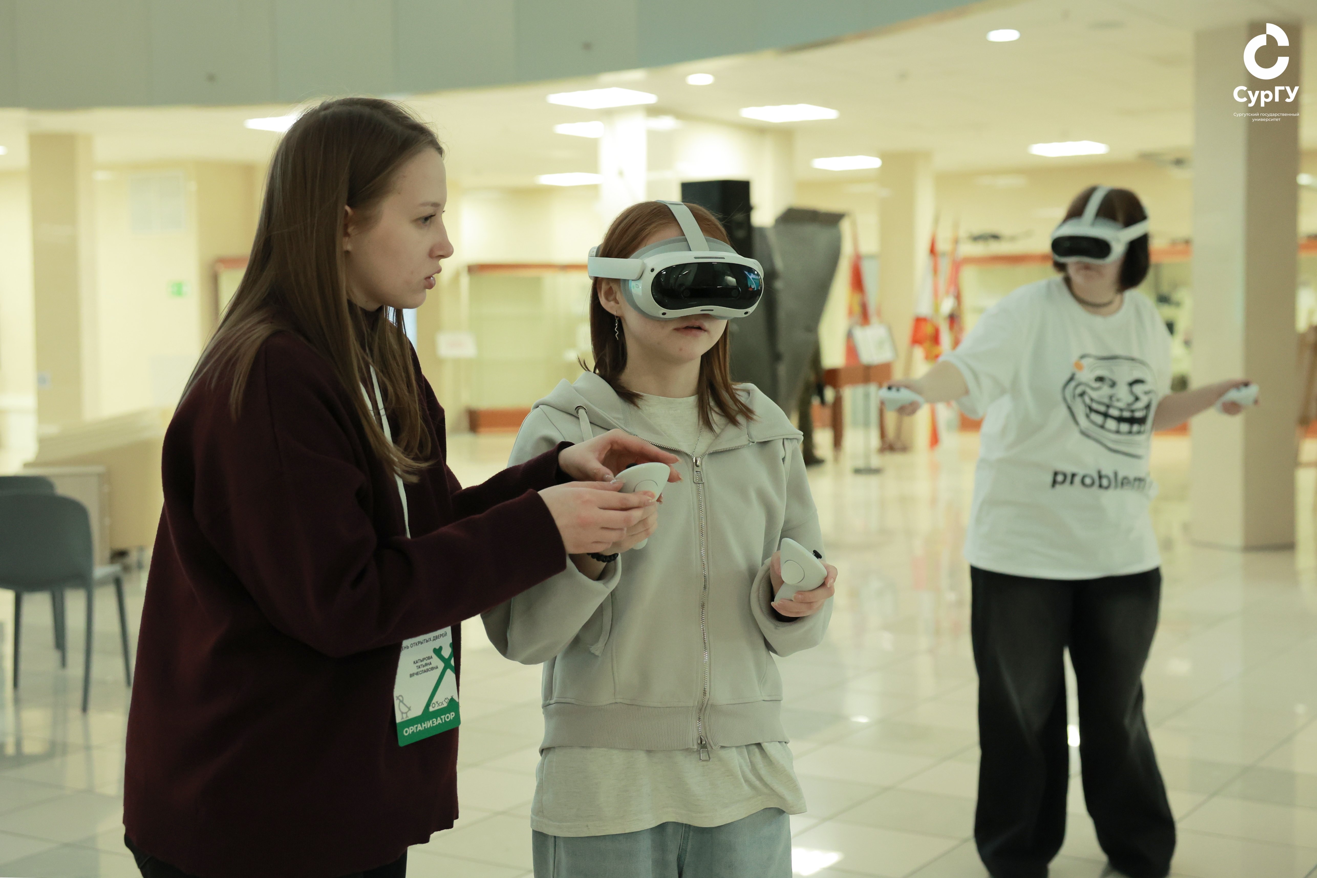 На площадках были представлены разнообразные специальности СПО, которые реализуются в Сургуте – от токарного и сестринского дела до косметологии и юриспруденции. На них гости крупнейшего вуза Югры смогли познакомиться с предложенными специальностями, пройдя профориентационный квест. В завершение мероприятия кураторы площадок были награждены благодарственными письмами. Гостям Дня открытых дверей ИПО КНЮ также представили спортивную зону СурГУ и VR-экспозицию, где они имели возможность испытать разные профессии в виртуальной реальности.