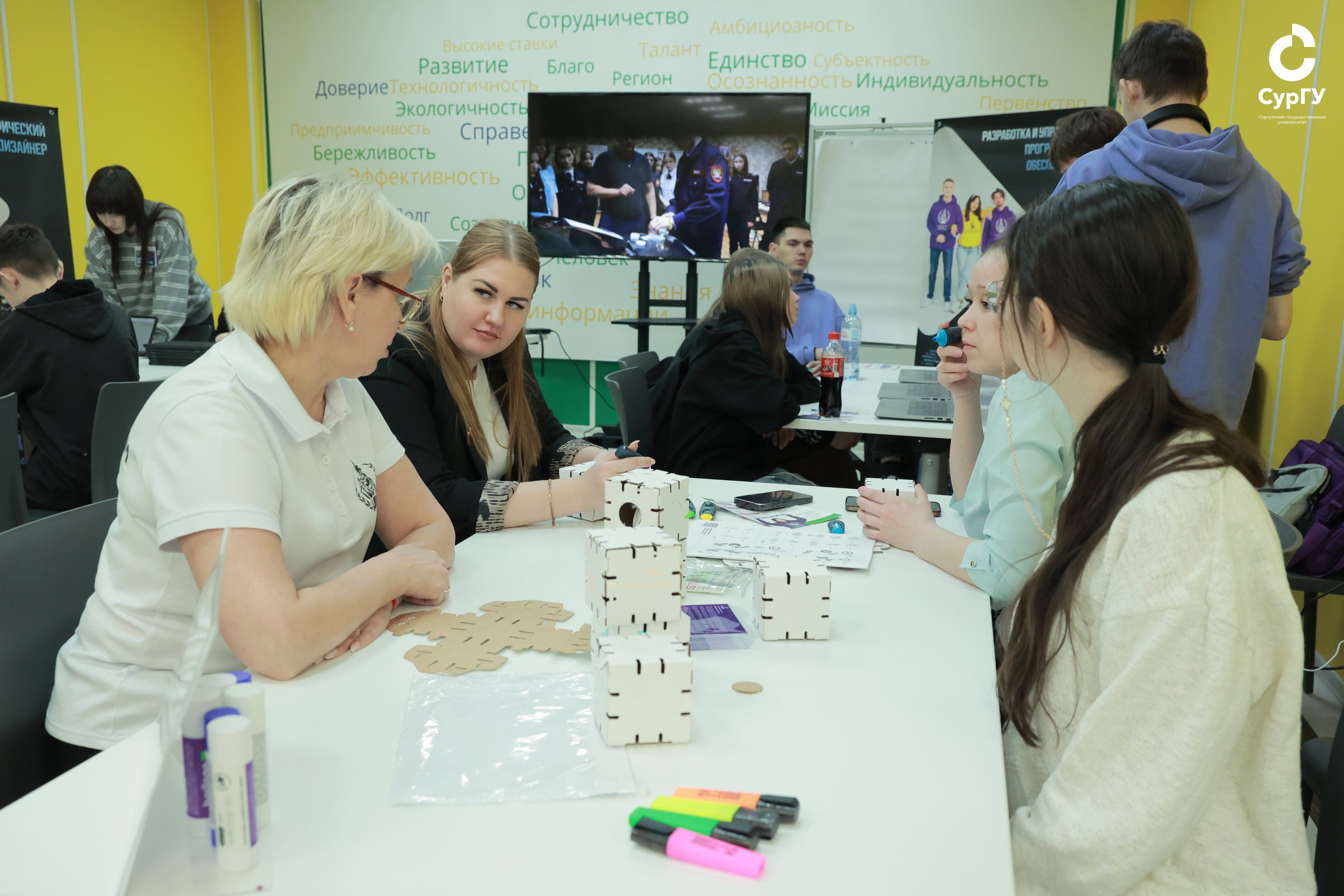«Концепция нашего Дня открытых дверей заключается в том, что по итогам диагностики ребята выбрали сферу деятельности в соответствии с предметом труда. Больше всего детей ориентировано на сферу „человек – знак“, – комментирует Наталья Хохлова, кандидат психологических наук, доцент кафедры психологии СурГУ, старший научный сотрудник ИПО КНЮ. – Для детей это мероприятие – возможность не только познакомиться с Сургутским государственным университетом и другими образовательными учреждениями города, но и понять, что необходимо современному человеку, чтобы выбирать сферу своей деятельности. День открытых дверей направлен на общее ориентирование в мире профессий».