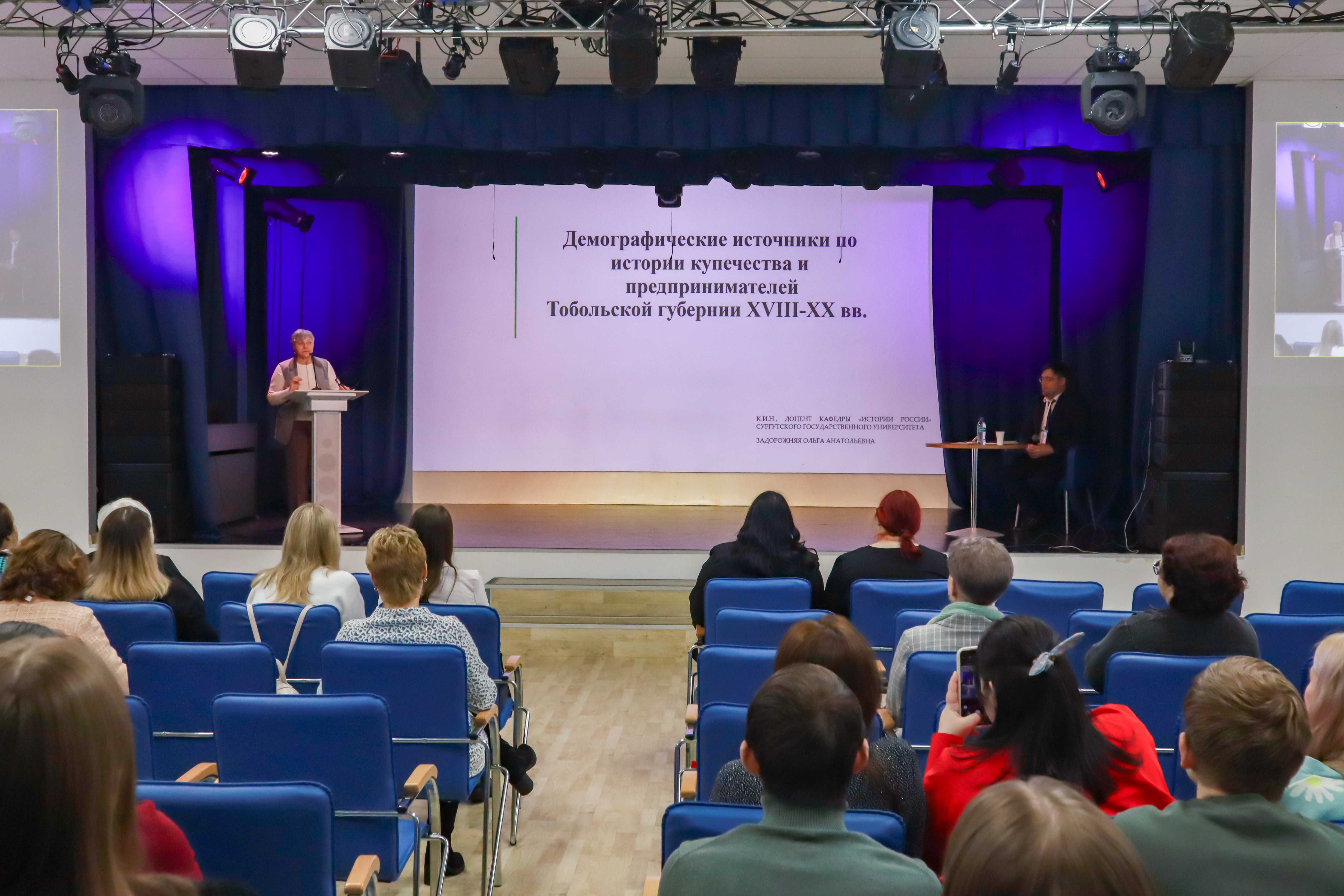 «Демографические документы как источники по истории купечества и предпринимательства Тобольской губернии XVIII – начала XX вв.», кандидат исторических наук, старший преподаватель кафедры истории России СурГУ Елена Владимировна Лешукова рассказала об архивных документах из личных фондов историков Гражданской войны в Западной Сибири П. И. Рощевского и К. Я. Лагунова, кандидат исторических наук, старший преподаватель кафедры истории России СурГУ Павел Владимирович Белоус представил доклад «Особенности изучения религиозности населения Западной Сибири».