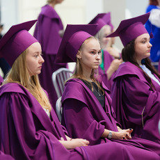 Слова благодарности родному университету и всему профессорско-преподавательскому составу от лица всех выпускников выразила обладательница красного диплома Института гуманитарного образования и спорта, неоднократная победительница городской, окружной и всероссийской «Студенческой весны» в номинации художественное слово Мария Фомкина.