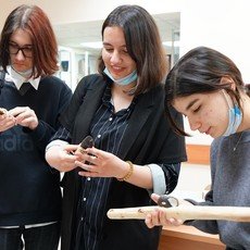 Заведующий кафедрой Д. В. Кирилюк и доцент кафедры, руководитель проекта «Югорская археология и этнология» НОЦ ИГОиС СурГУ О. В. Кардаш рассказали будущим абитуриентам об Университете, работе историка, истории и археологии Югры. Ребята побывали на экскурсии в аудиториях СурГУ. Особый интерес вызвала выставка учебной коллекции археологических предметов – реплик артефактов разных эпох. Школьники смогли не только рассмотреть их через стекло витрин, но и подержать в руках кремниевые ножи, скребки и палки-копалки.