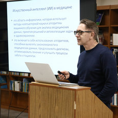 29 февраля в Библиотечно-информационном центре состоялась лекция по теме «Нейросети в медицине».   Докладчиком выступил кандидат медицинских наук, доцент кафедры акушерства, гинекологии и перинатологии СурГУ Сергей Иванников.  Были освещены как положительные, так и отрицательные стороны применения искусственного интеллекта.