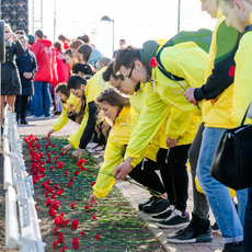 Затем неравнодушные студенты, преподаватели и горожане в очередной раз из рук в руки по цепи передали 1 240 гвоздик от вуза до мемориала Славы в знак памяти и скорби по погибшим в годы Великой Отечественной войны.