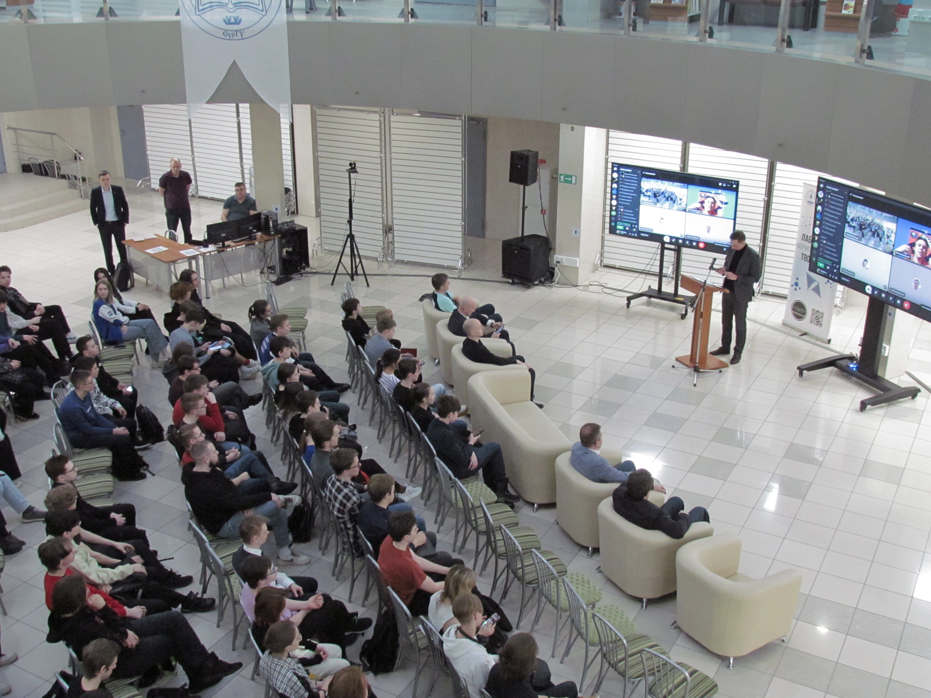 Открылось мероприятие торжественной речью от первого проректора Сургутского государственного университета Ивана Николаевича Даниленко, а также выступлениями других приглашенных гостей, в их числе – генеральный директор телекомпании «СургутИнформТВ» Игорь Ярош, генеральный директор «Школы 21» в Сургуте Дмитрий Балаушко и заведующий кафедрой информатики и вычислительной техники СурГУ, руководитель проекта «Лаборатория научно-технического творчества ‟ArtLab”» Дмитрий Федоров.