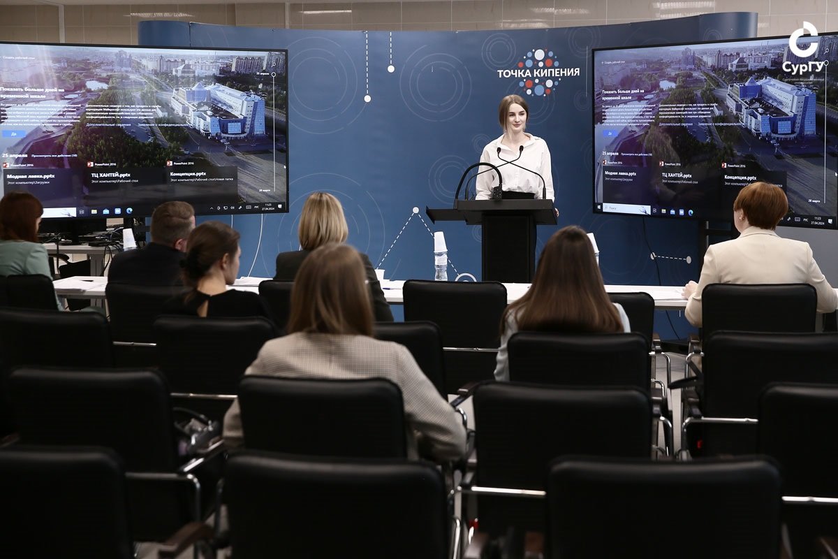 В Точке кипения Сургутского госуниверситета 27 апреля состоялся студенческий конкурс «Представь себя работодателю». Его организаторы – кафедра гражданско-правовых дисциплин и трудового права и Союз «Сургутская торгово-промышленная палата».