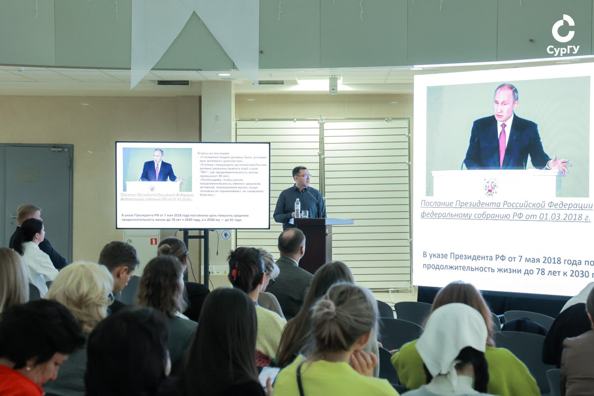 Они поделились своими наработками по игровым заданиям, инновационным элементам в организации уроков физкультуры, о пользе ИИ для специалистов по физической культуре и спорту в профессиональной деятельности, преодолении страха перед соревнованиями, уверенности и результате. Завершающим пунктом стал спектакль «На севере жить – традиции чтить!» от кафедры психологии СурГУ, приуроченный к году исторического наследия в Югре и 95-летию со дня образования округа.