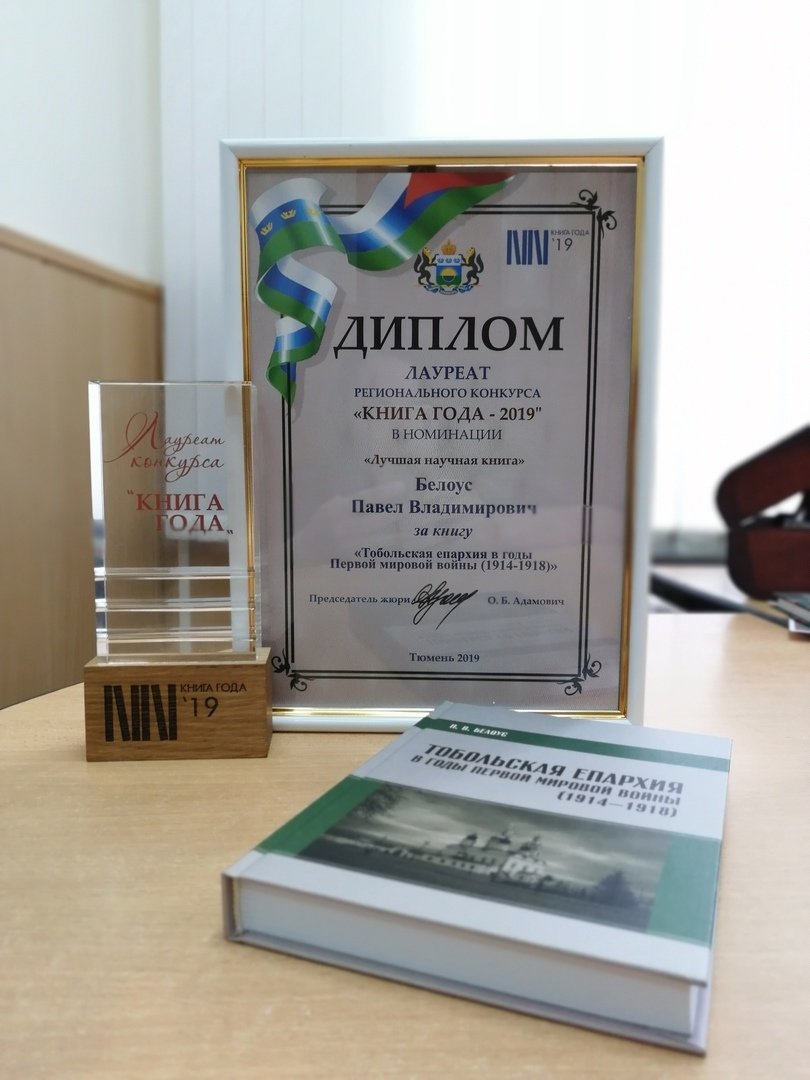 «В прошлом году моя книга "Тобольская епархия в годы Первой мировой войны (1914–1918)" стала лауреатом регионального конкурса "Книга года – 2019", получив диплом и знак "Серебряная литера". В этом году монография отмечена на IX Общероссийском конкурсе изданий для вузов «Университетская книга – 2020». Среди более чем двухсот книг скромный труд послужил вручению грамоты издательству Тюменского государственного университета в номинации «Лучшее издание по родиноведению», – рассказывает он.